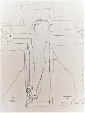 Dopo l’immagine della sfera Moi, che nell’episodio precedente cominciava a riempirsi d’amore, Claudio passò a una nuova rappresentazione. Disegnò Gesù inchiodato a una croce immensa, piantata nel cuore del Mediterraneo, tra la Spagna e l’Italia (Fig. 9).